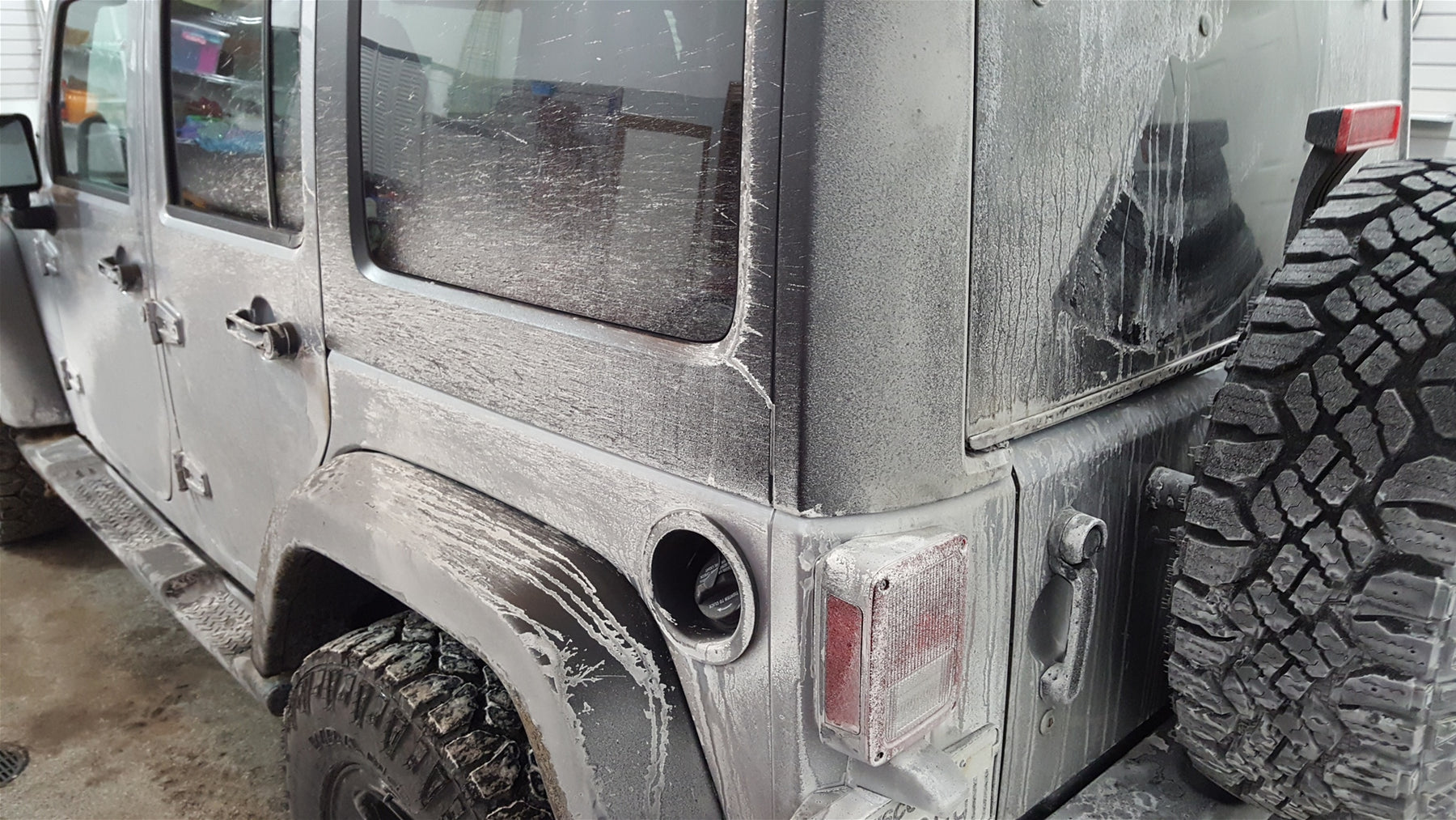 This Jeep drove around after a snowstorm in Wisconsin. The salt was applied to the roads which then transferred to just about every square inch of the body and frame. Leaving a vehicle covered in salt is a good way to promote rust.