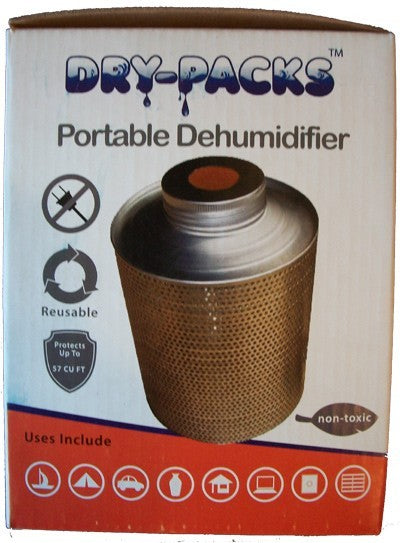 The heavy-duty perforated steel canister contains 750 grams of silica gel to protect your valuables from condensation and to stop rust, mildew, corrosion, and spoilage. The 4" diameter x 5" tall unit protects 57 cubic feet of enclosed space. A built-in indicator turns from orange to dark green to signal it has reached its maximum moisture saturation level. Once that level has been reached, the unit can easily be recharged in any conventional oven (2-3 hours at 250 degrees F). The units can be recharged as often as needed for lifetime protection. Silica gel is inert and non-toxic. Will not emit harmful vapors, stain, or cause chemical reaction. Safe to use with sensitive materials.